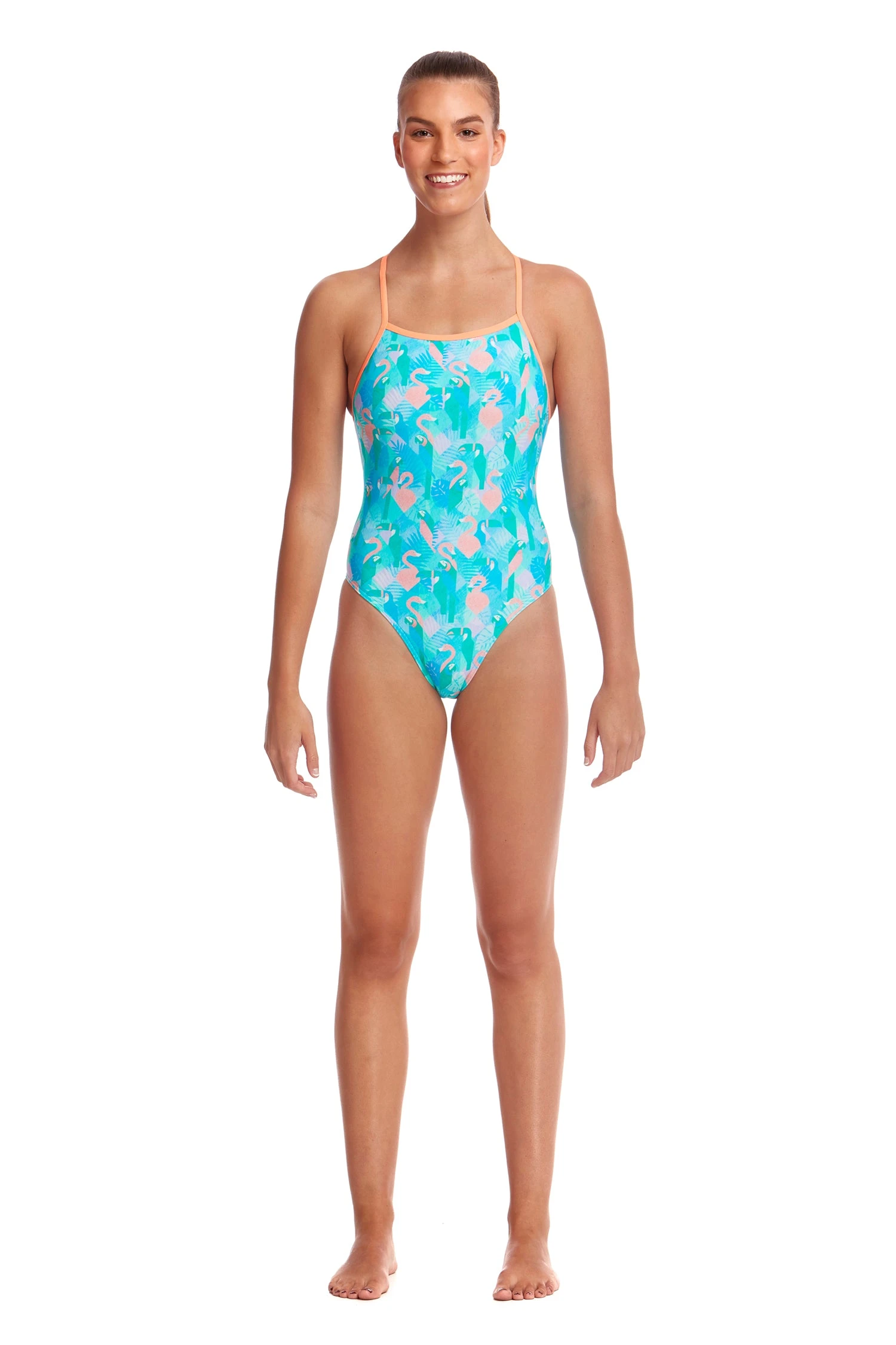 The one piece style that criss crosses down your back offering you the flexibility to tie it just the way you like. With a moderately high cut leg it’s the perfect style to strap in for a hard session in the pool or relax when you’re poolside.